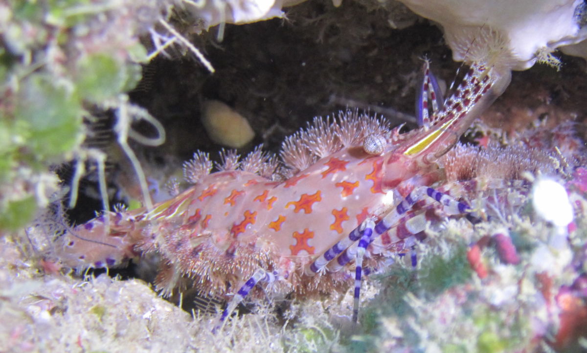Cette crevette très colorée est assez rare sur nos sites de plongée pour que je lui dédie une petite place dans la rubrique « Les Spéciales ».